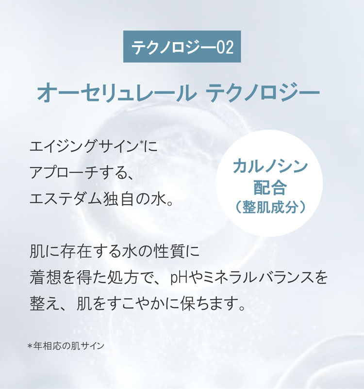 肌に存在する水の性質から着想を得た、エステダム独自の水。