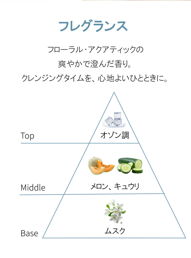 フローラル・アクアティックの香りが、毎日のスキンケアタイムを心地よく包み込みます。